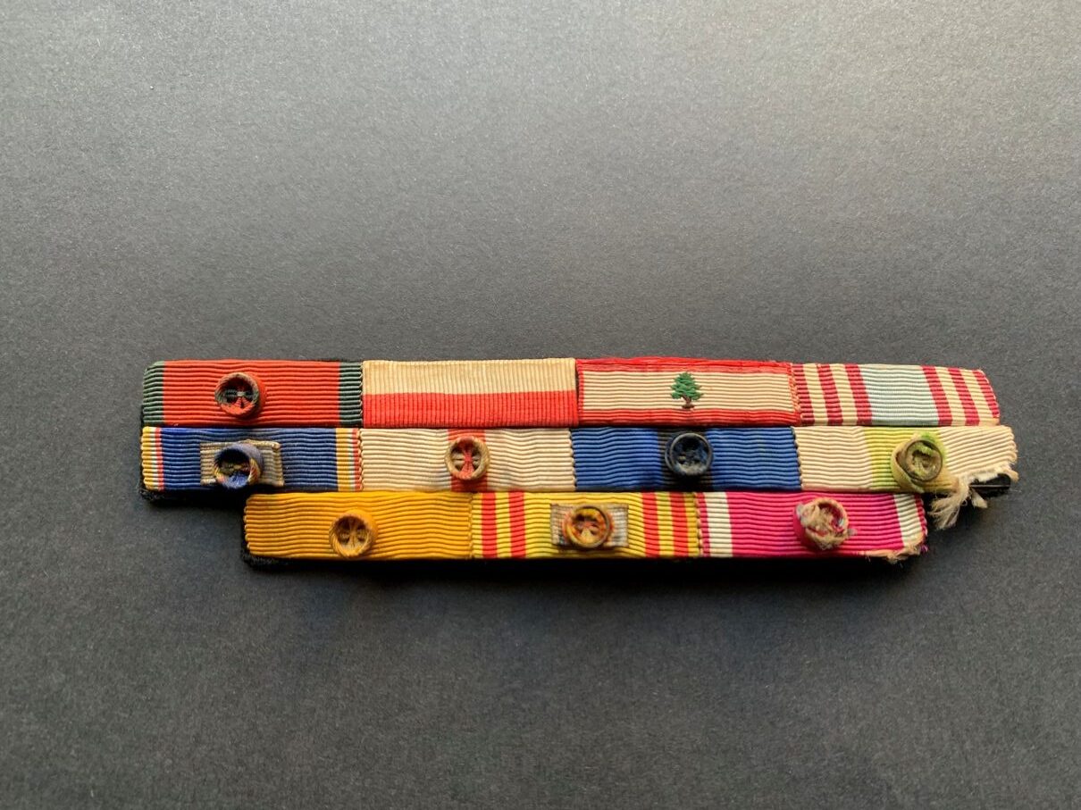 A very rare ribbon bar for a Lebanese officer who served in Lebanon and got training in various countries where he obtained those medals below and that was back in the late 1940’s up till late 1980’s:
